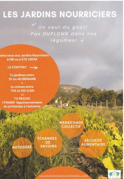 Créés en 2016 à l’initiative d’un groupe d’habitants du Diois dans la Drôme, les Jardins Nourriciers proposent une approche innovante de l’agriculture qui prend en compte des critères à la fois écologiques, économiques et sociaux.