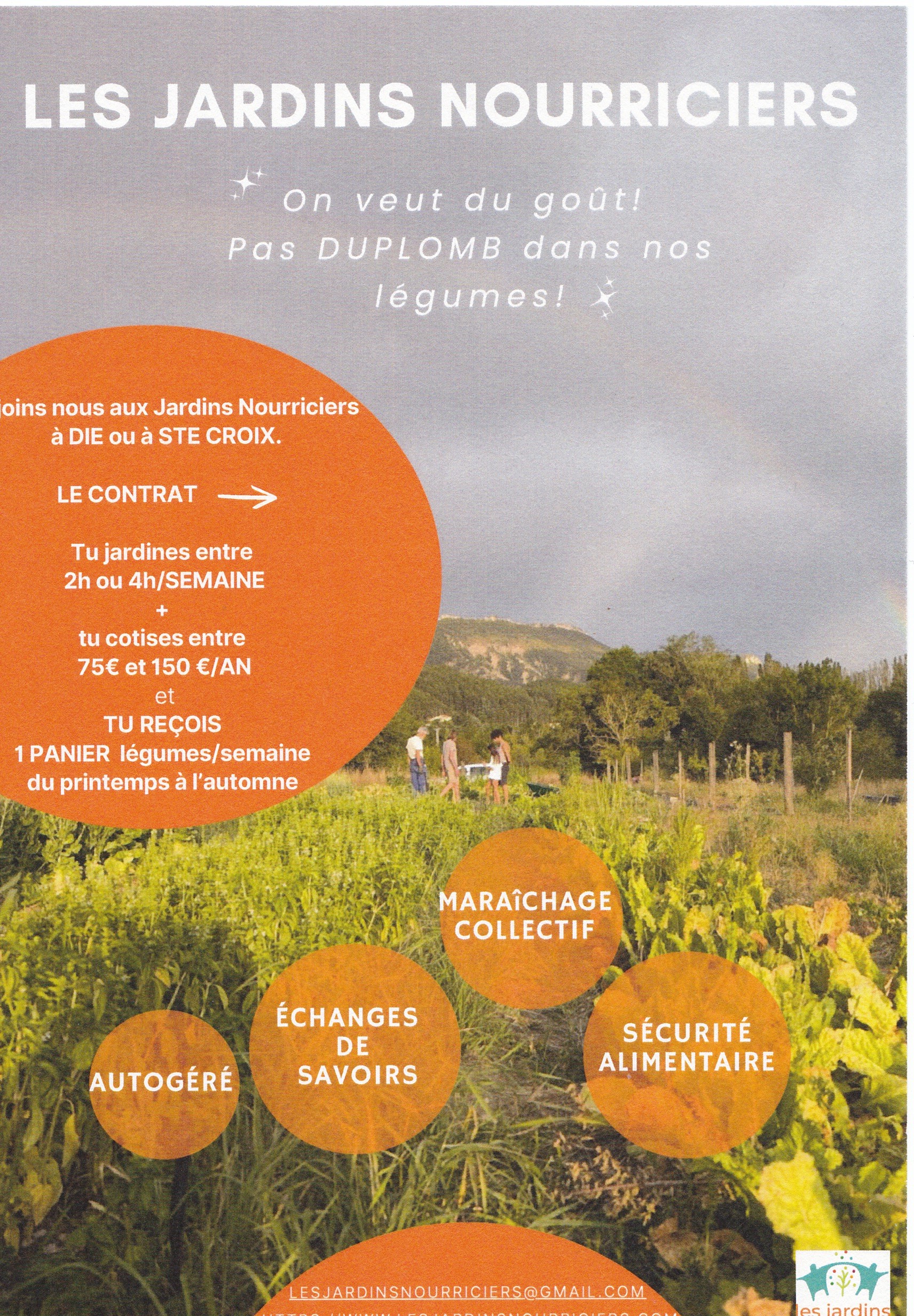 À Die et à Sainte Croix , quelques paniers sont encore disponibles : info clé sur le flyer, sinon écrivez-nous ici : lesjardinsnourriciers@gmail.com
